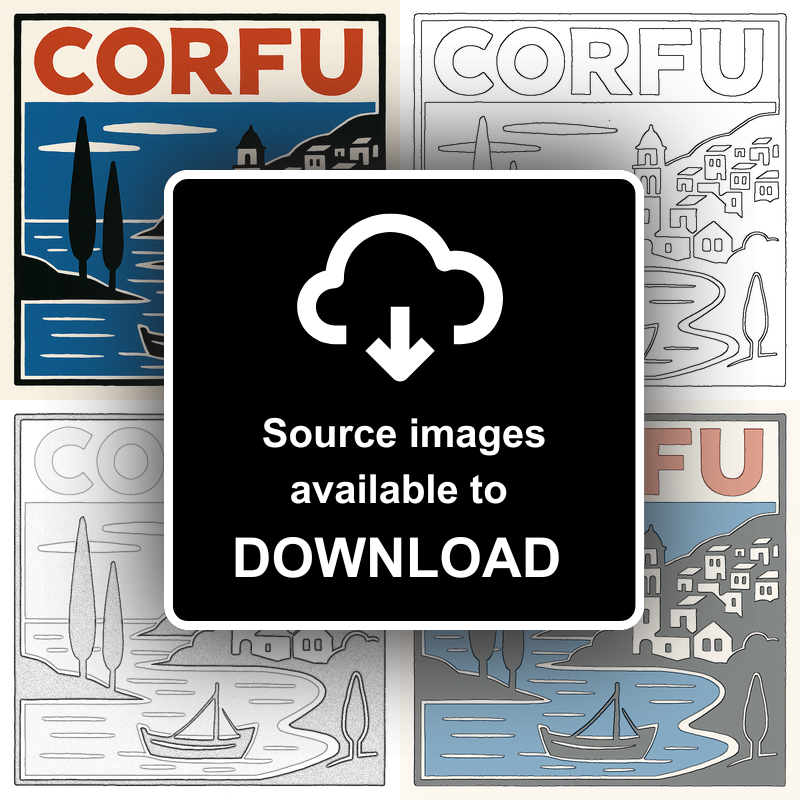 Available in two square sizes (36cm or 46cm) and framed in your choice of black or white, this piece makes an ideal focal point for any space. For creative spirits, we also offer the unique option to purchase and download high-resolution source images, including line art and sketch files, so you can craft your own lino-print at home. Perfect for art lovers, travellers, or anyone seeking a touch of Greek inspiration.
