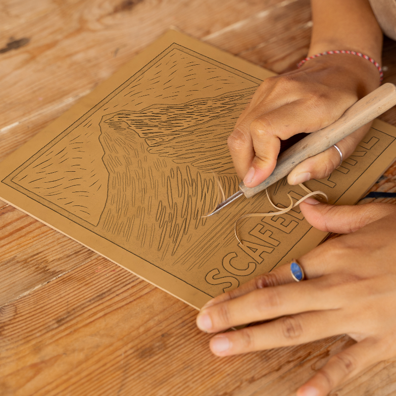 Celebrate the striking beauty of England’s highest peak with this distinctive Scafell Pike linocut-style artwork, part of our Lake District collection. This piece captures the majesty of Scafell Pike through bold lines and traditional printmaking textures, evoking the rugged contours and dramatic elevation that make this mountain iconic. The composition uses a harmonious blend of earthy, natural tones: deep forest greens for the rolling slopes, warm ochre and terracotta for lower ridges, and cool, muted blues in the shadows and surrounding terrain. Snow-white highlights crown the summit, inviting memories of crisp mountain air and sweeping Lake District views. The sky background glows with an inviting golden yellow, infusing the scene with an atmospheric dusk or sunrise glow. Rendered in a hand-carved effect, this composition is both contemporary and rooted in timeless craft, making it perfect for lovers of outdoor adventure and artisan design alike. Available framed in either sleek black or understated white and in 36cm or 46cm square sizes, this print adds a touch of Cumbrian wildness to any space. For creative souls, we also offer a downloadable pack of source images including line drawings and initial sketches—perfect for creating your own unique lino print inspired by Scafell Pike. Bring the spirit of the Lake District home, or gift it to a fellow nature enthusiast, with this impactful, handcrafted artwork.