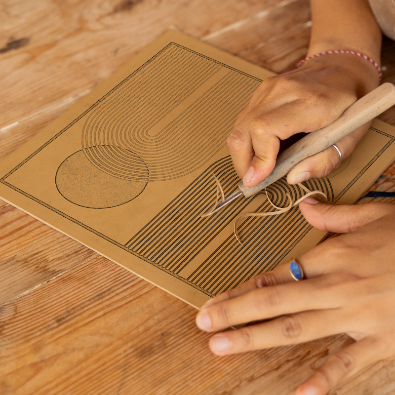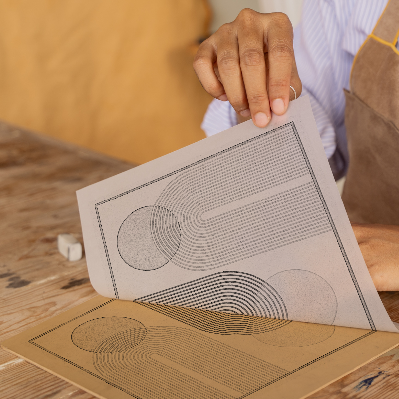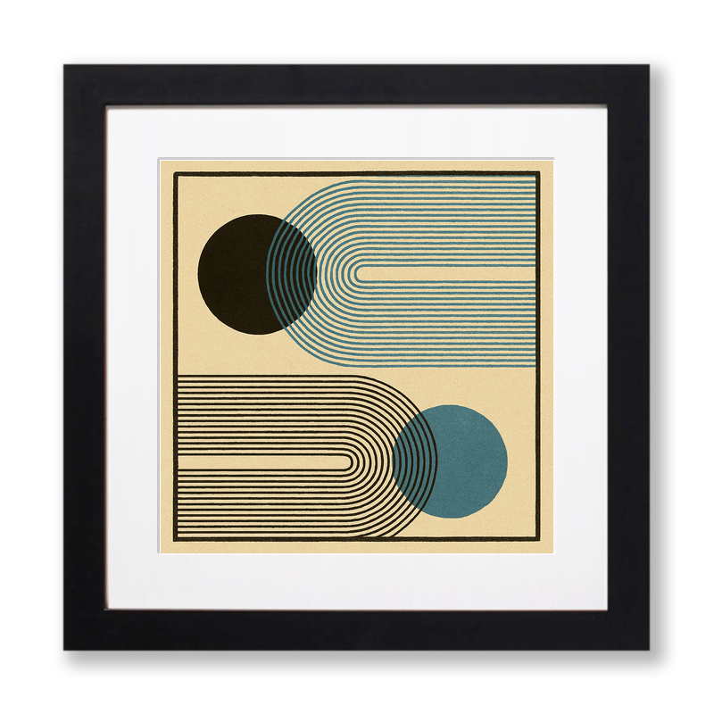 Celebrate the essence of modernism with this striking Bauhaus-inspired lino-print style artwork from our exclusive Bauhaus collection. Presented in a classic geometric configuration, the piece is defined by its precise arrangement of lines and bold, circular forms. The composition features two overlapping circles—one in solid black, the other in a muted blue—interacting with a series of parallel and curved lines. The lines radiate out from the circles, forming dynamic shapes that evoke both movement and harmony, all encased within a fine black border against a soft beige background. This artwork masterfully balances simplicity with sophistication, making it an eye-catching addition to any contemporary interior. Available framed in black or white, in either 36cm or 46cm square sizes, this piece offers adaptable styling for your home or workspace. For the creatively inclined, we also offer the option to purchase and download the source images, including line drawings and sketches, so you can craft your very own lino print inspired by this modernist masterpiece. Perfect for lovers of minimalist design, mid-century modern décor, and the timeless influence of Bauhaus.