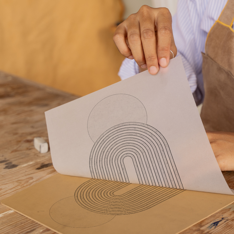 Available framed in your choice of sleek black or crisp white, and in both 36cm and 46cm square sizes, this artwork will make a sophisticated statement in any setting, from living rooms to creative studios. For creative enthusiasts, we also offer the unique option to purchase and download the source images—including line drawings and preparatory sketches—allowing you to craft your own personal lino print inspired by this Bauhaus classic. Whether as a ready-to-hang piece or a jumping-off point for your own creations, this print is an elegant homage to the enduring appeal of Bauhaus design.