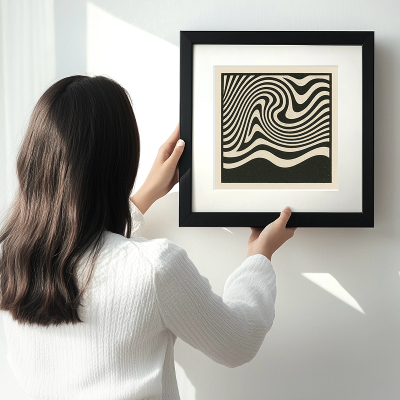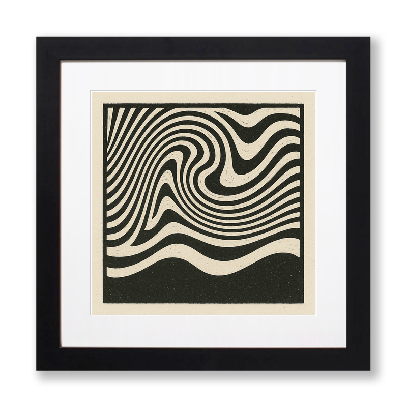 Bring the timeless spirit of Bauhaus to your home with this striking lino-print style artwork from our exclusive Bauhaus Collection. Crafted with bold black lines undulating across a natural cream background, this print exemplifies the harmony of form and function at the heart of Bauhaus design. Intricate, yet deceptively simple, the piece utilises rhythmic wave-like patterns that twist and flow across the square, creating a mesmerising sense of movement and depth. The artwork’s tactile, slightly weathered finish pays homage to traditional printmaking, evoking the handcrafted textures of genuine lino prints.