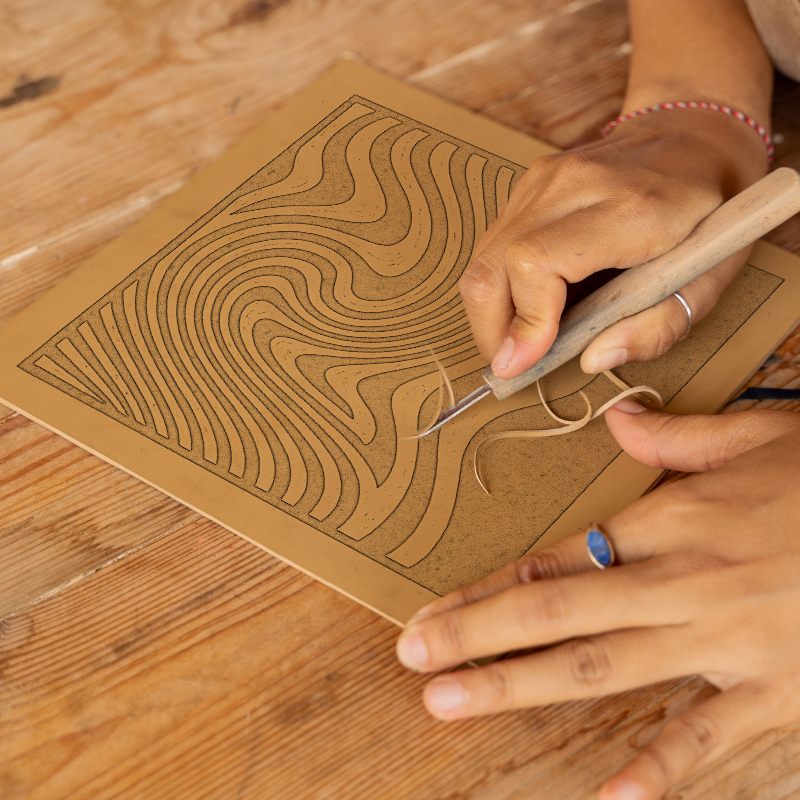 Available framed in your choice of sleek black or crisp white, in 36cm or 46cm square, it’s ideal for living rooms, studies, or creative spaces in need of a modern touch. For those inspired to make their own art, we offer a unique digital download package containing the original line drawing, sketches, and high-resolution source images — perfect for personal lino-printing projects, study, or creative reinterpretation.